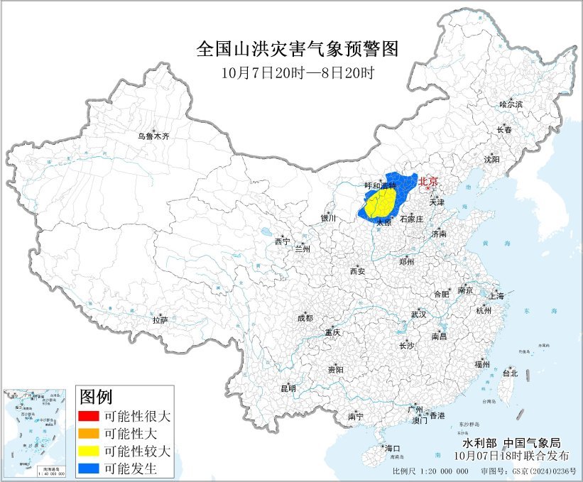 突发洪水预警:河北、山西、内蒙古、陕西等部